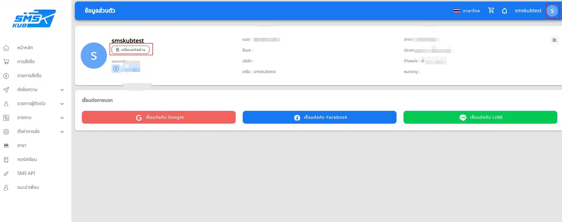 คลิกที่ไอคอนโปรไฟล์มุมบนขวา แล้วคลิกเปลี่ยนรหัสผ่าน